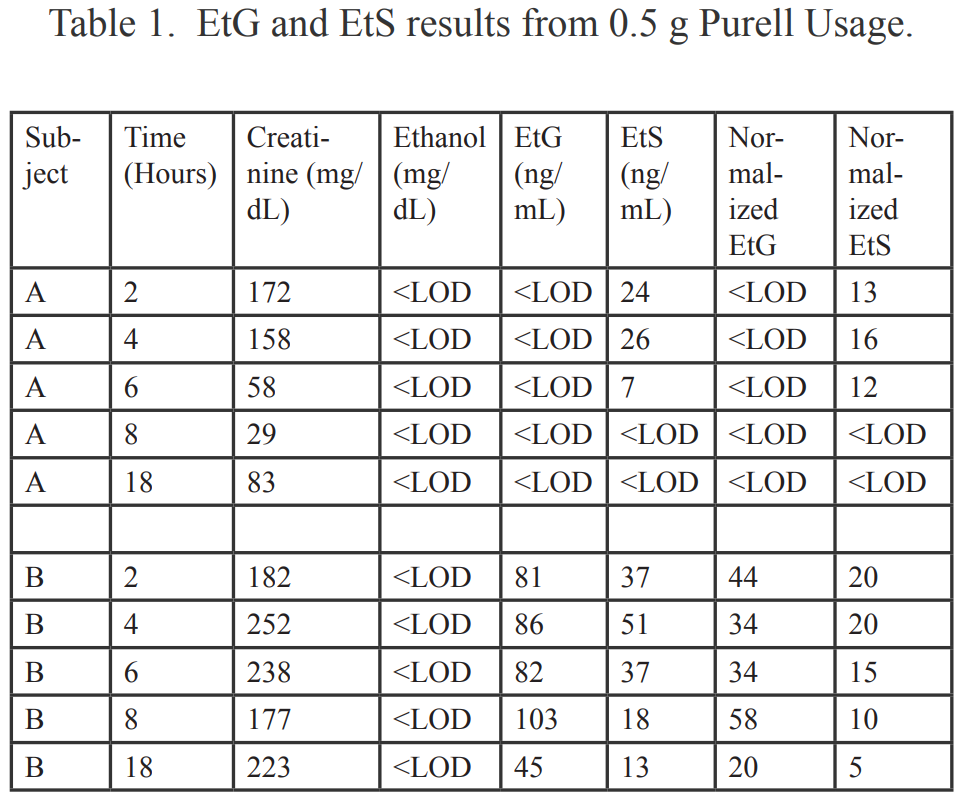 Ethyl Glucuronide (EtG) and Ethyl Sulfate (EtS) Concentrations Following Use of Ethanol Containing Hand Sanitizer